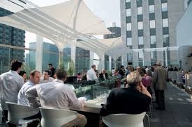 On Friday night I met up with some friends at a hip, downtown rooftop bar. After standing in a line downstairs for a couple minutes, our ids were checked by a pair of well dressed men, who then gave us wrist bands to indicate our appropriate age. We were ushered into the elevators that took us up to the top floor. We stepped out onto black tile flooring, speckled with flecks of blue and silver. White leather couches were grouped together throughout the large room, with fancy rugs flung out underneath them. A fire place sat quaintly in the corner next to a larger grouping of chairs and couches. The cubed tables donned little "reserved" signs, indicating we were not important enough to sit there. My friend and I walked out to the patio section, where two fire pits roared in the middle of the action, as thirsty patrons sipped their drinks and nibbled on small appetizer plates. Booth tables made of dark, paneled oak lined the sides of the patio. All of these were filled with groups of people chatting away.